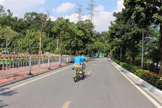 環(huán)著花都湖騎游一圈,